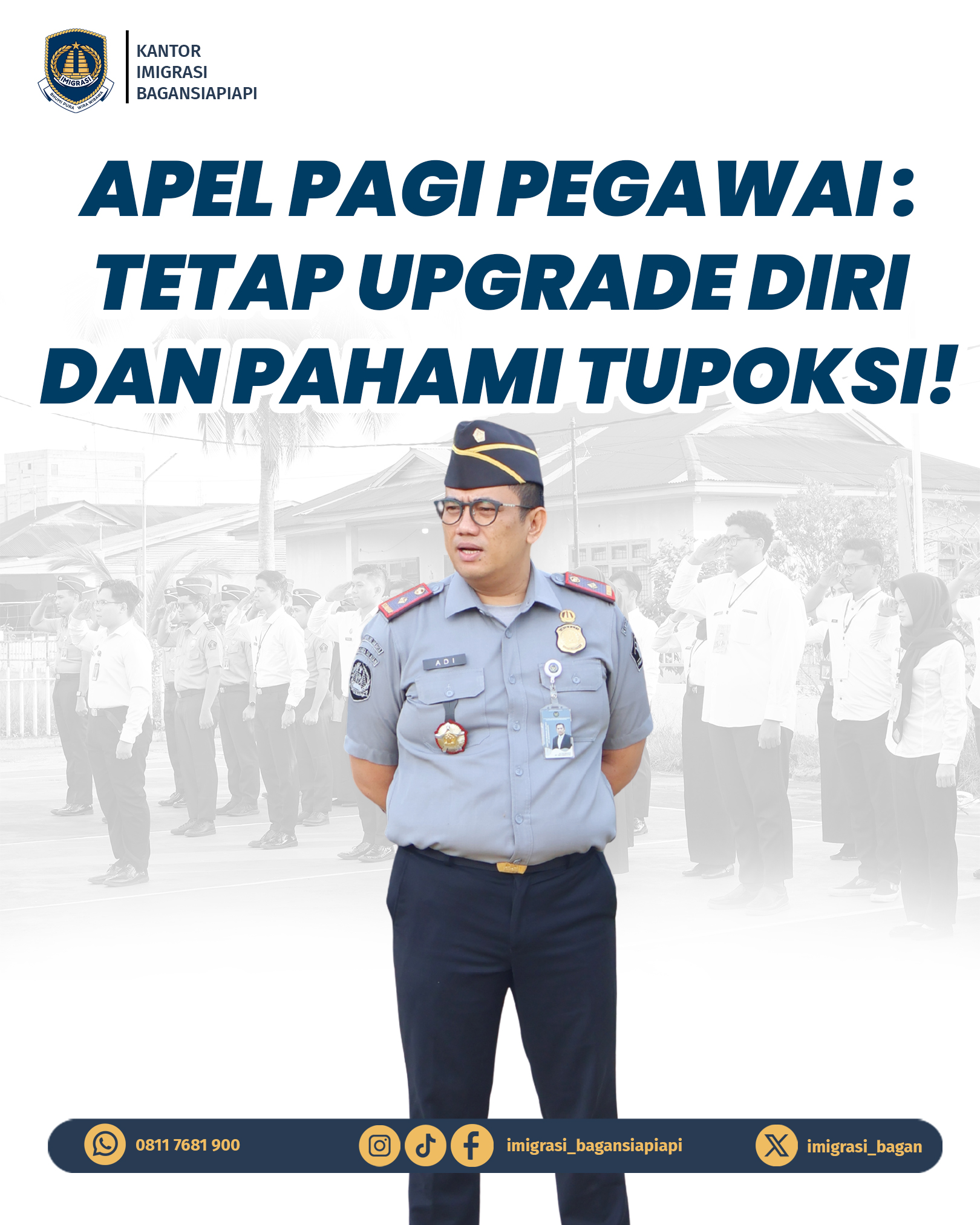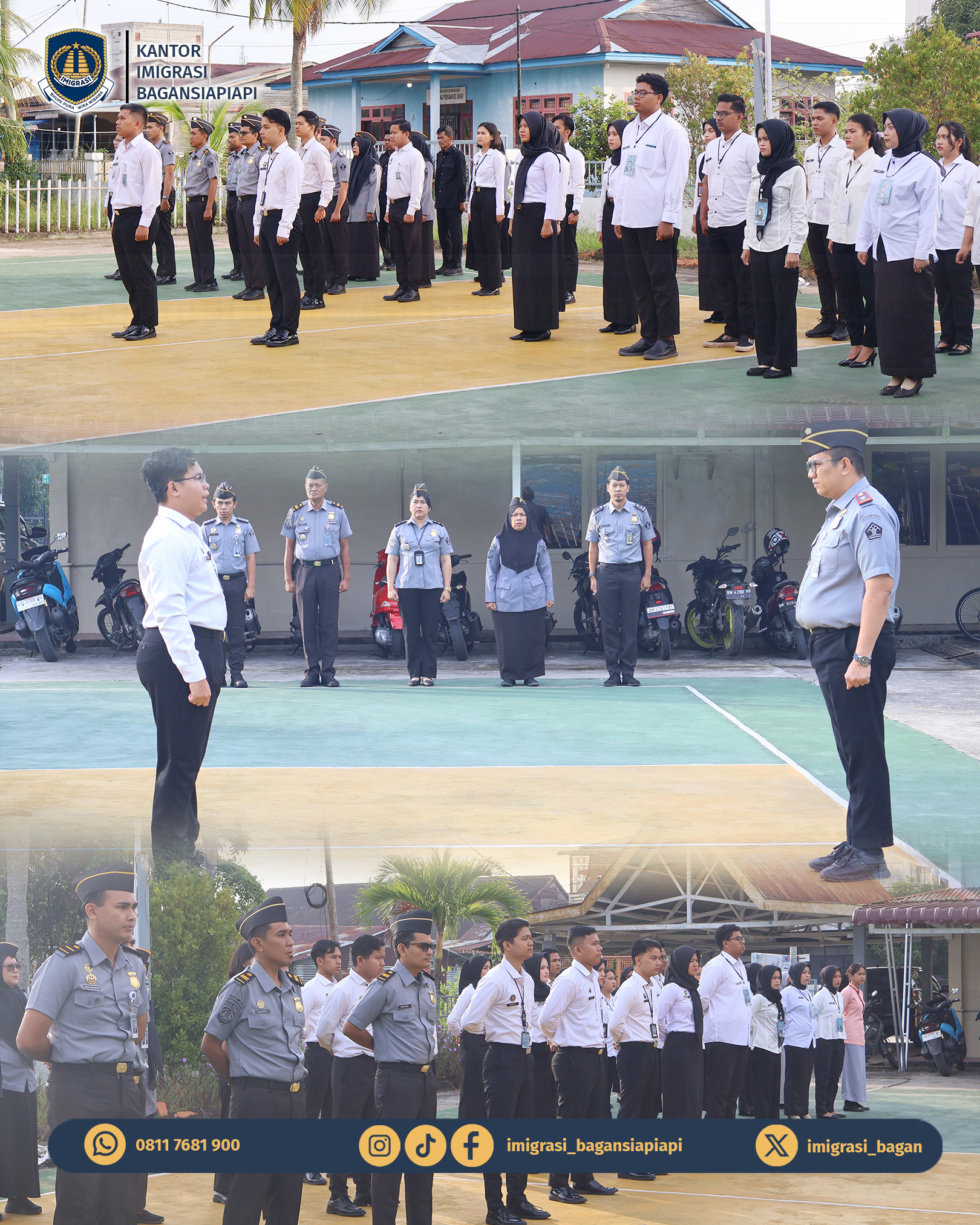 Apel ini dipimpin langsung oleh Kepala Kantor Imigrasi Kelas II TPI Bagansiapiapi. Dalam kesempatan tersebut, beliau menegaskan bahwa setiap pegawai perlu terus mengembangkan diri, memperluas wawasan, dan menguasai tugas pokok dan fungsi.