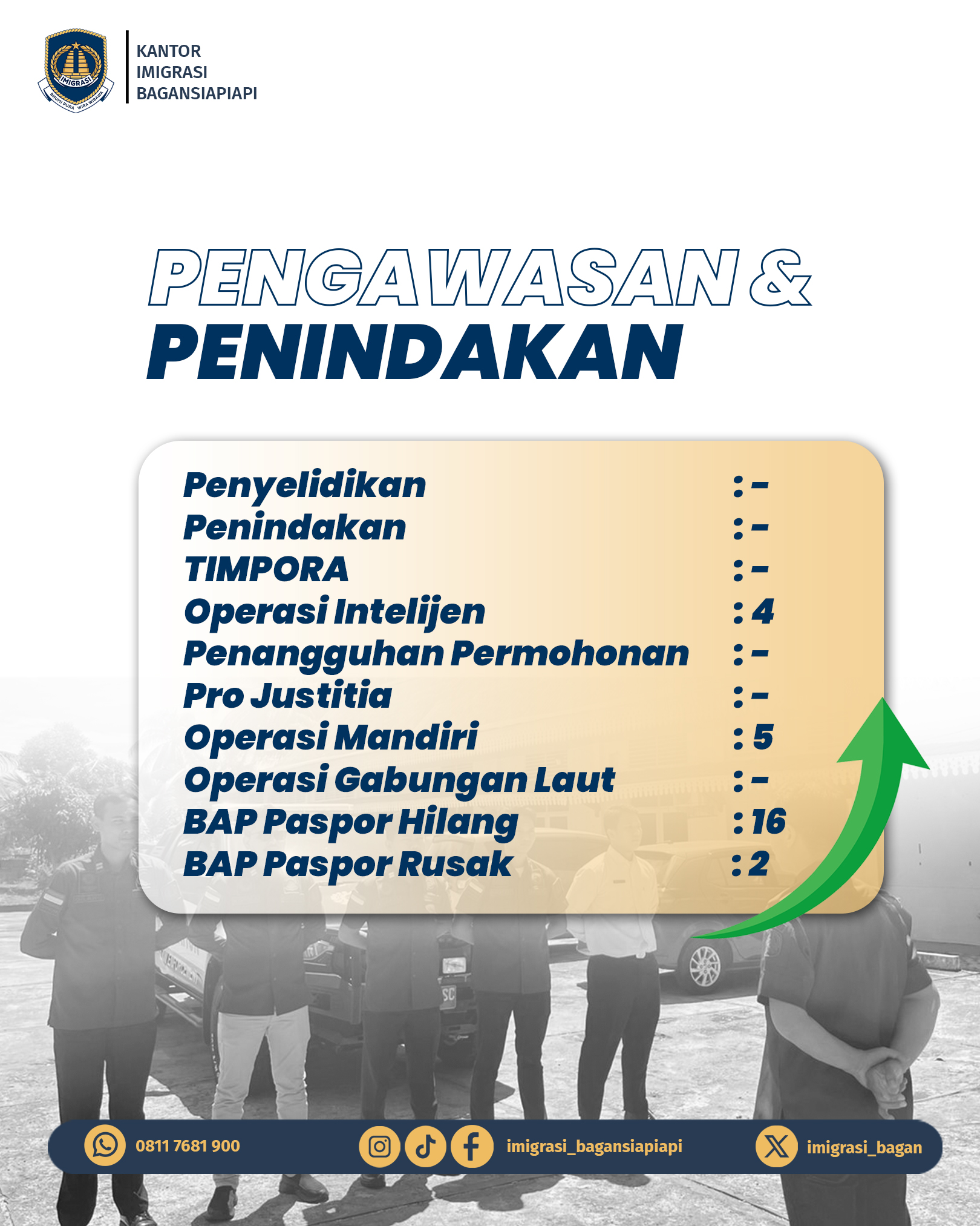 Berikut Capaian Kinerja Kantor Imigrasi Kelas II TPI Bagansiapiapi periode bulan Desember 2025.