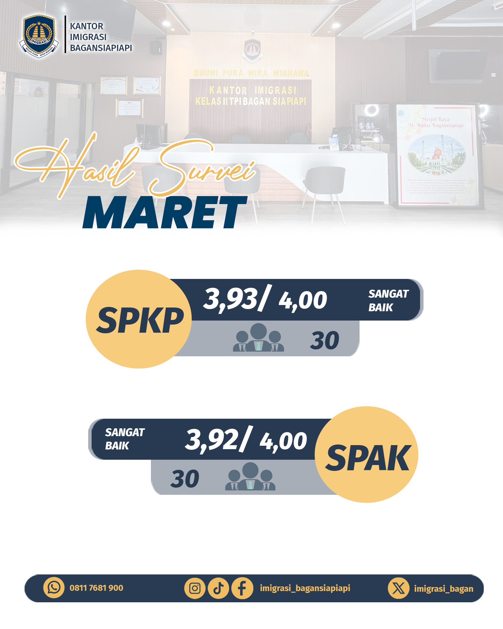 Berikut hasil SPKP & SPAK pada Kantor Imigrasi Kelas II TPI Bagansiapiapi pada bulan Maret.