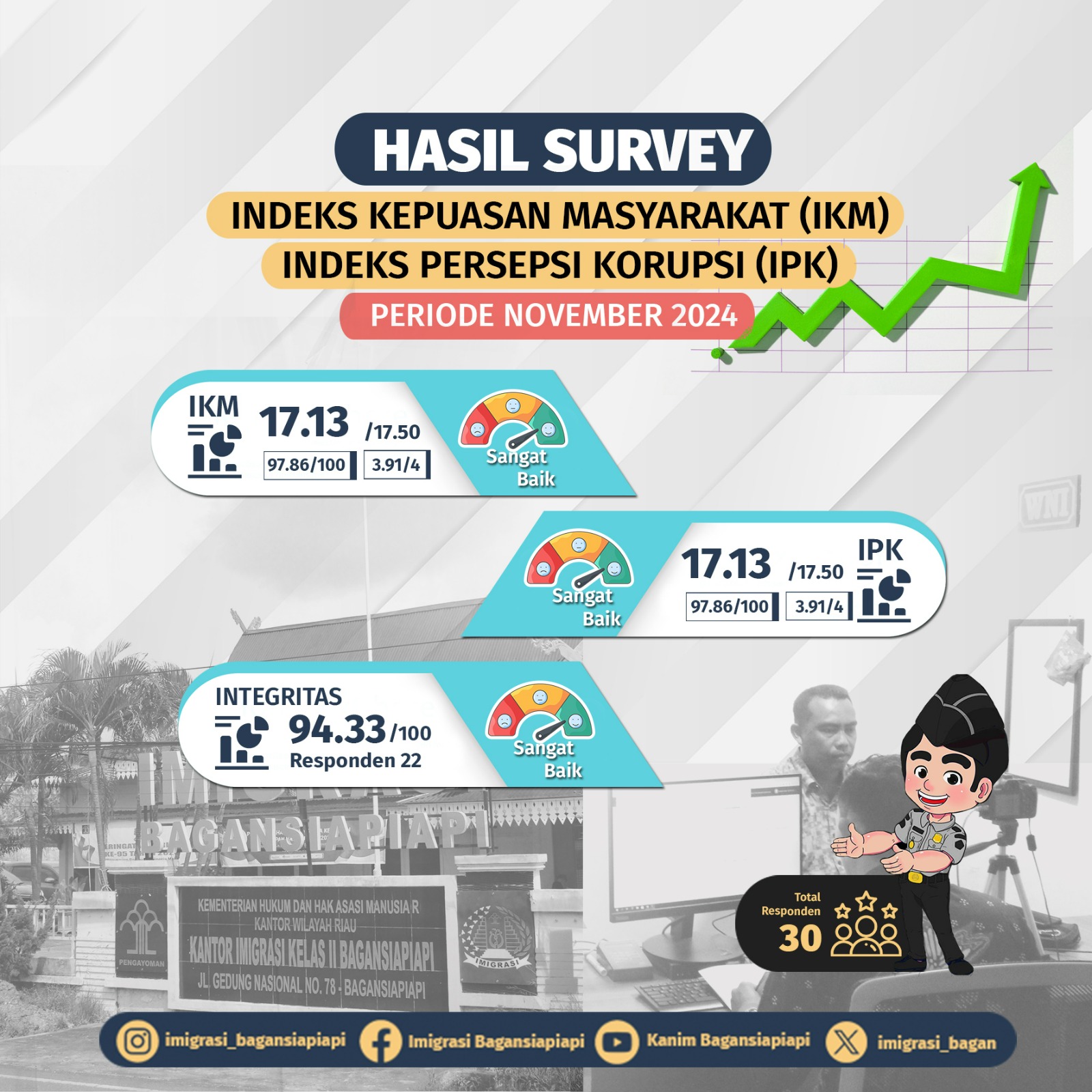 Hasil Survei Mandiri, IKM dan IPK Bulan November 2024 Kantor Imigrasi Bagansiapiapi.