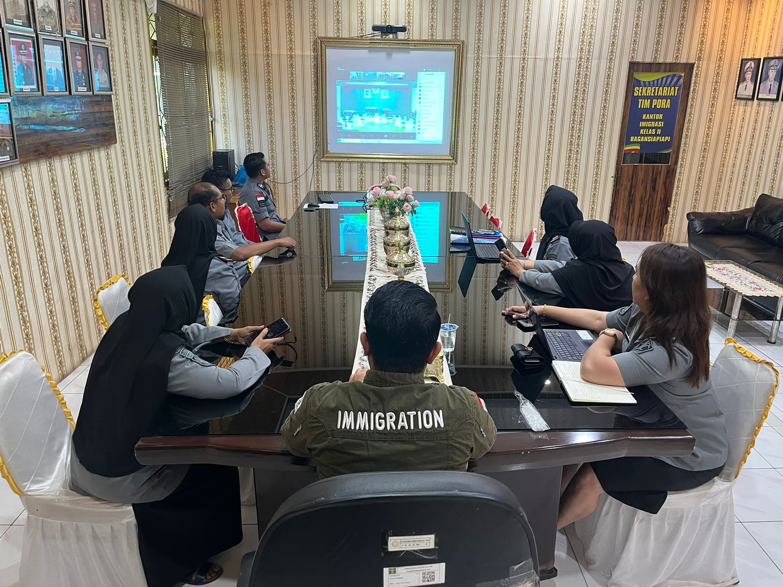 Bagansiapiapi, – Kantor Imigrasi Kelas II TPI Bagansiapiapi turut berpartisipasi dalam kegiatan arahan dari Menteri Imigrasi dan Pemasyarakatan, yang dilaksanakan secara virtual. Acara ini merupakan bagian dari upaya peningkatan koordinasi dan pelaksanaan tugas di bidang imigrasi dan pemasyarakatan di seluruh Indonesia.