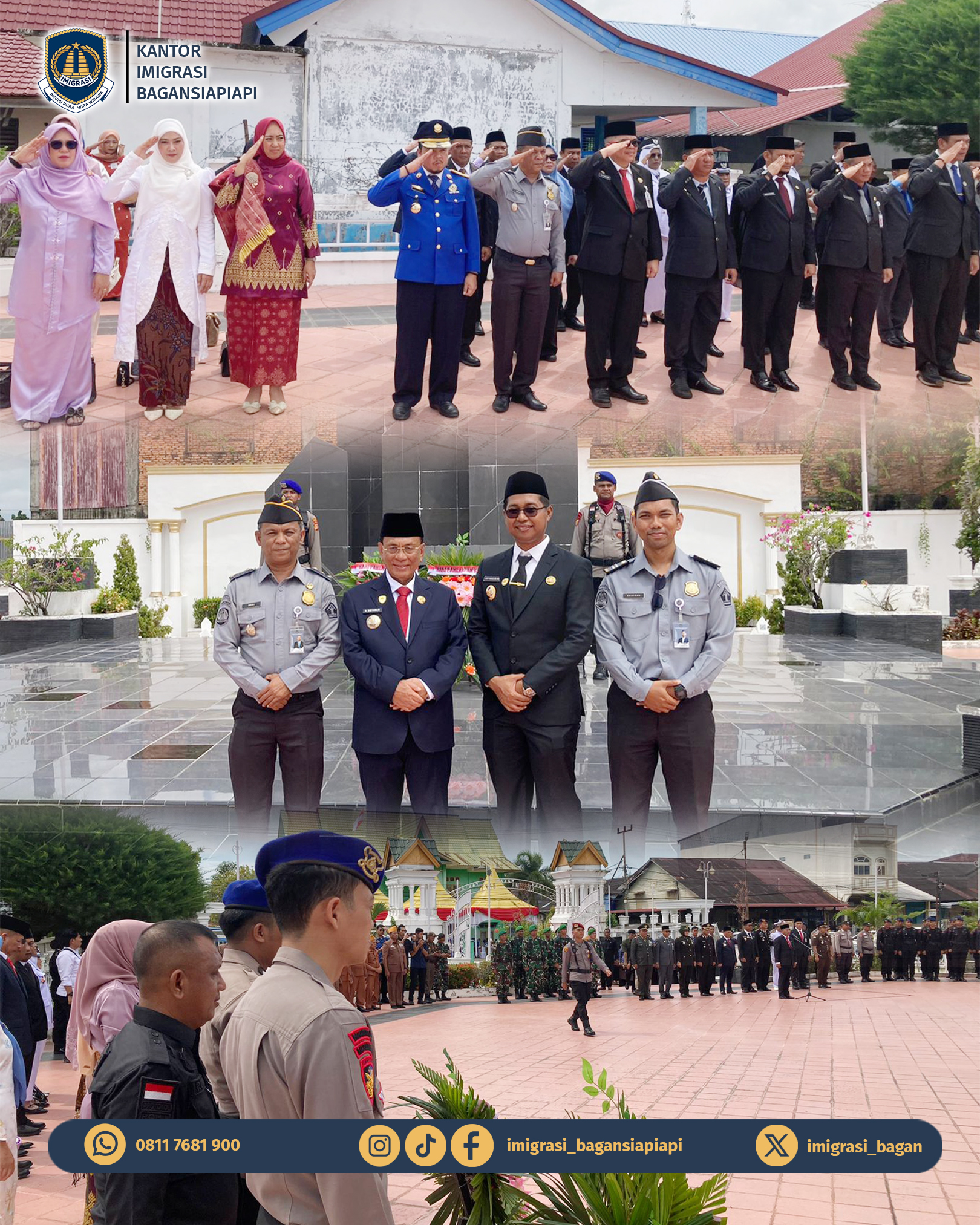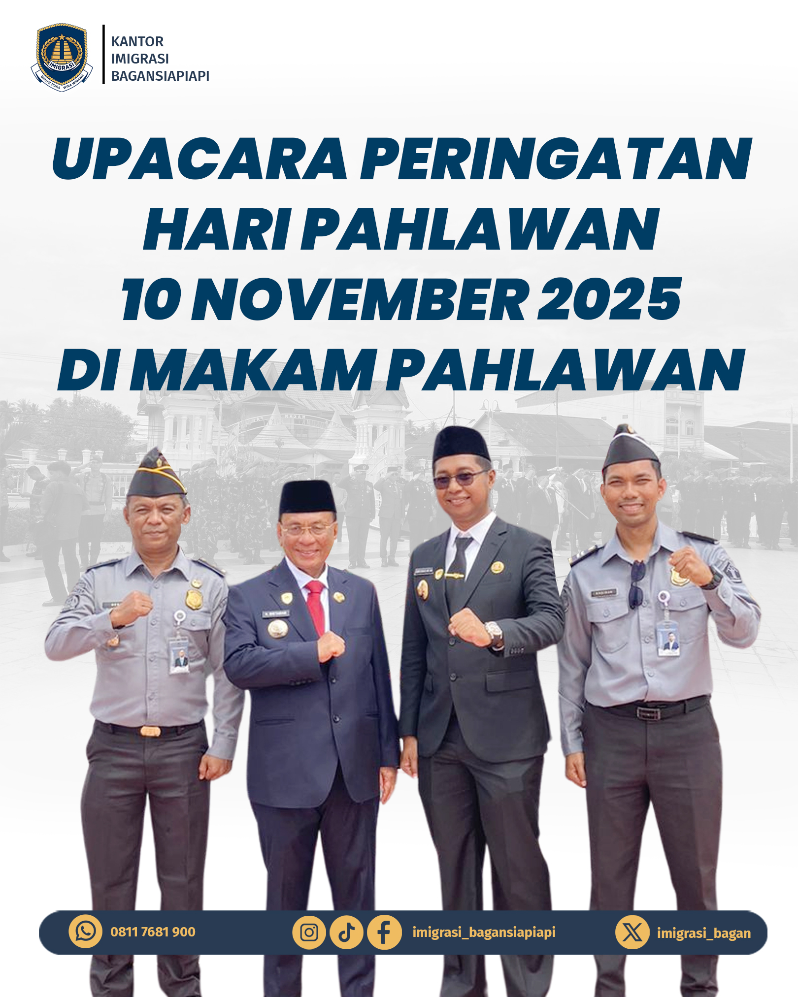 Kantor Imigrasi Kelas II TPI Bagansiapiapi mengikuti Upacara Peringatan Hari Pahlawan 10 November 2025 di Taman Makam Pahlawan Kusuma Bakti Bagansiapiapi.