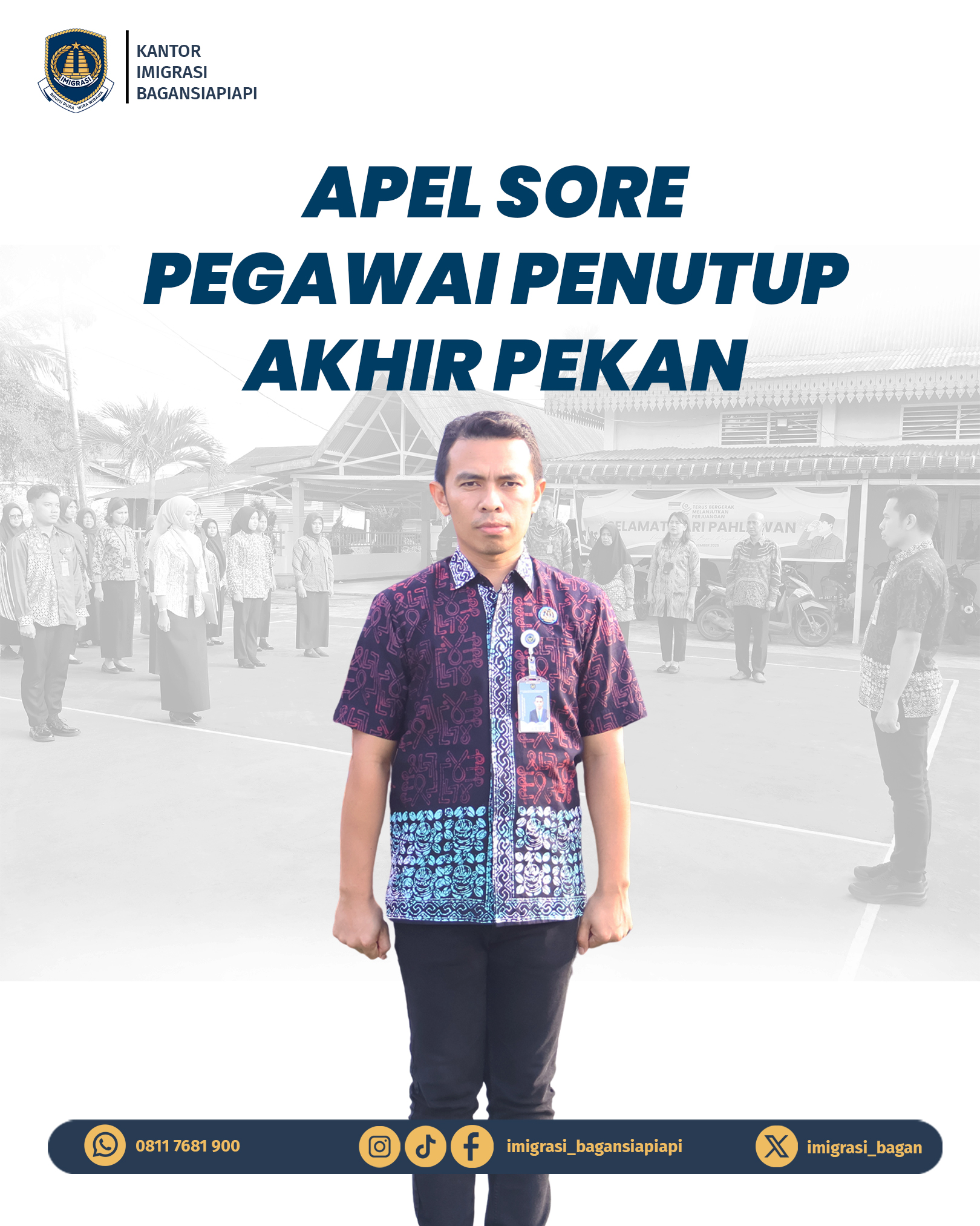 Jumat (21/11), Kantor Imigrasi Kelas II TPI Bagansiapiapi melaksanakan apel sore akhir pekan yang dipimpin oleh Kasubsi Penindakan Keimigrasian.