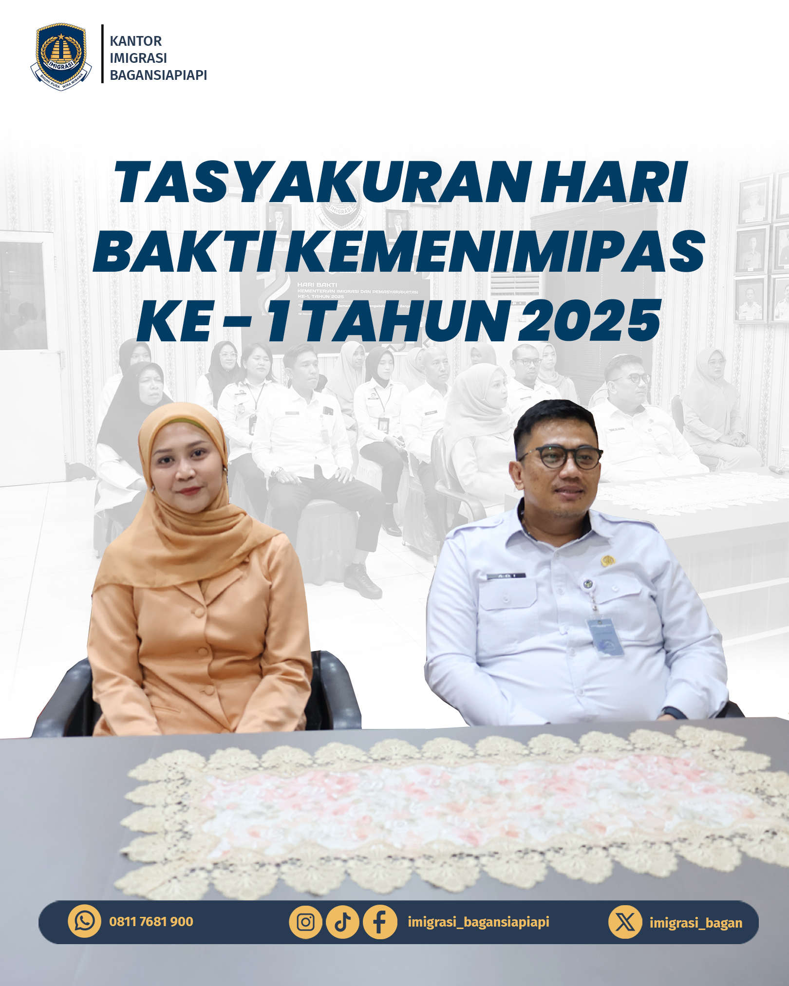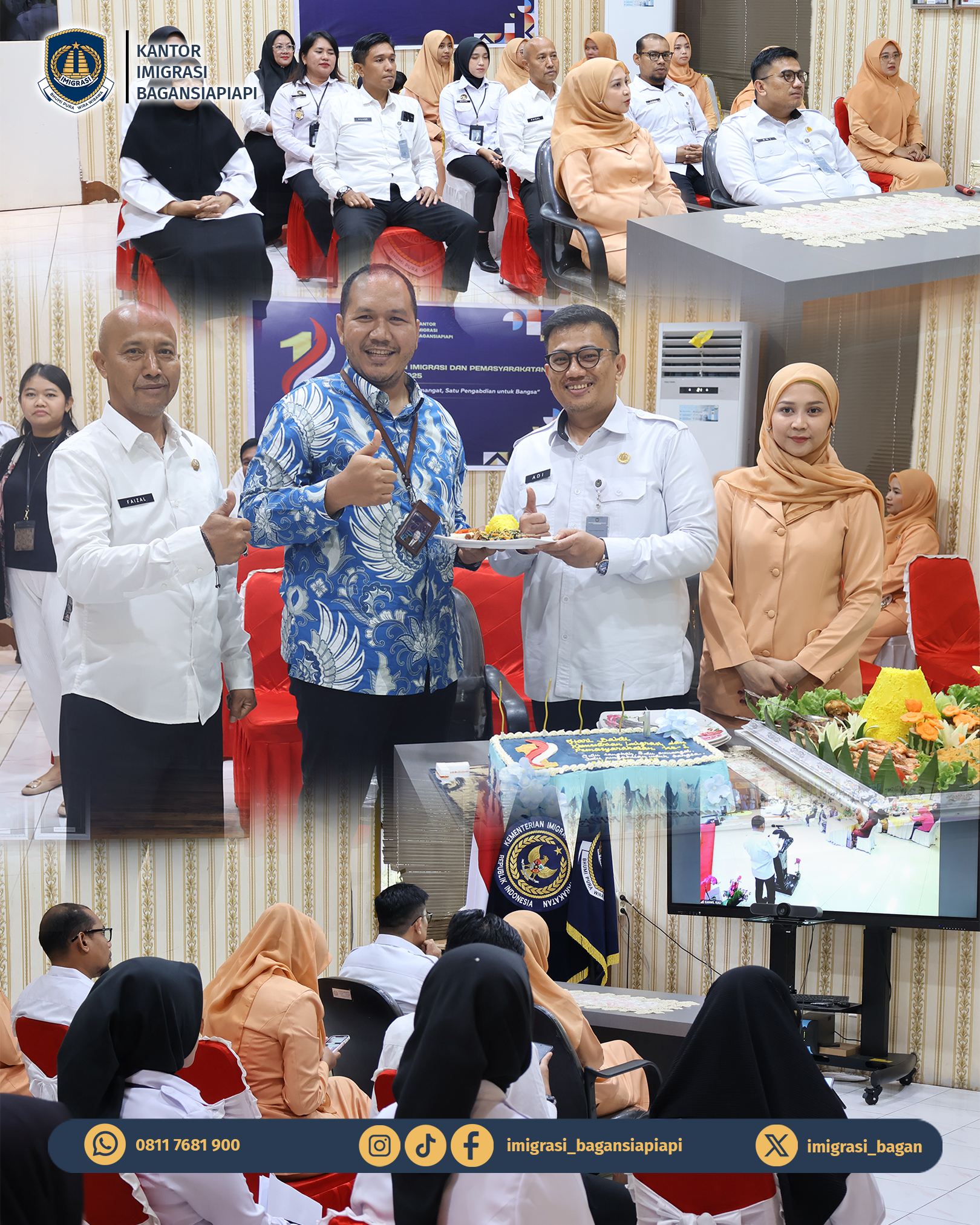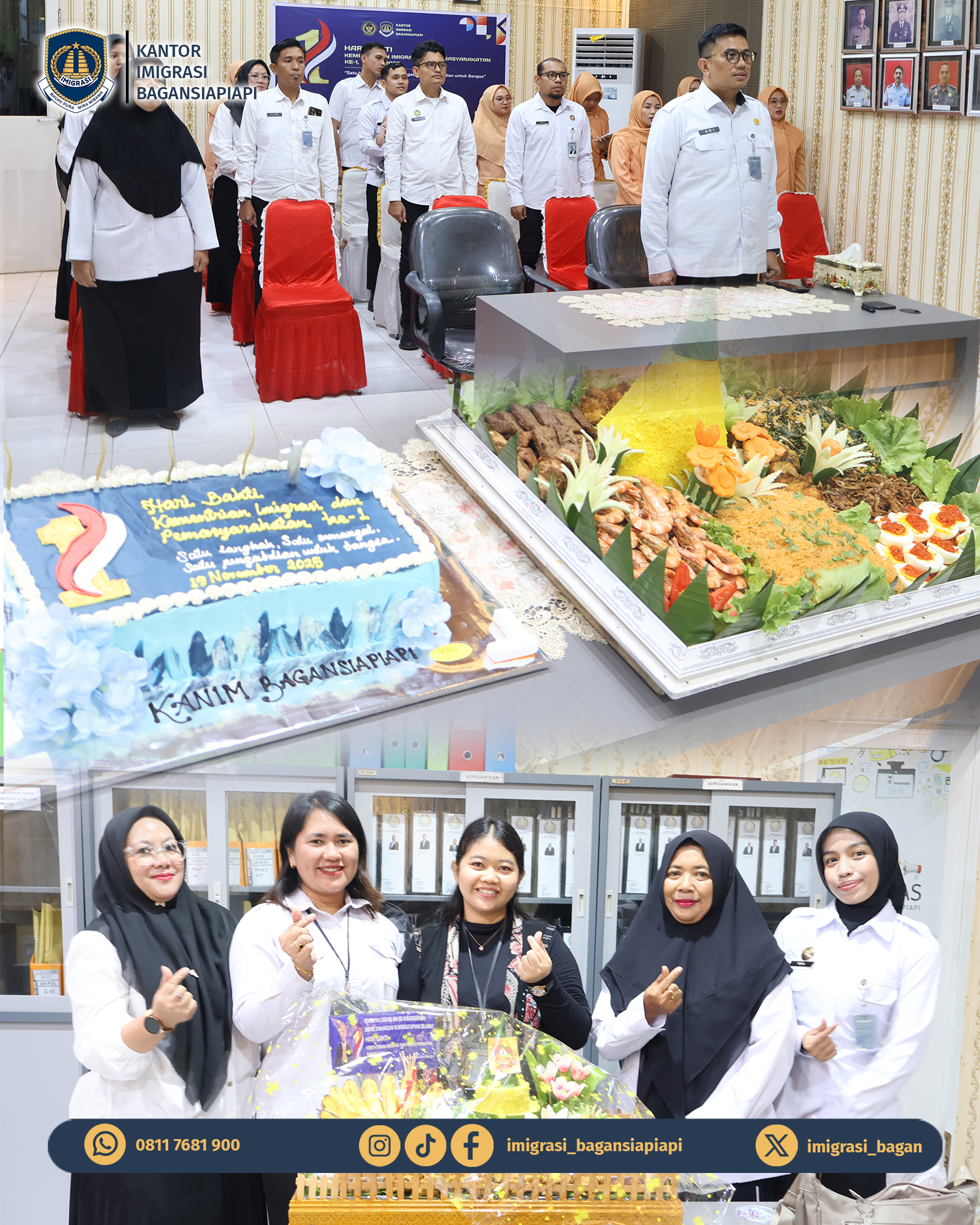 Rabu (19/11), Kantor Imigrasi Kelas II TPI Bagansiapiapi melaksanakan Tasyakuran Hari Bakti Kementerian Imigrasi dan Pemasyarakatan ke-1 Tahun 2025.