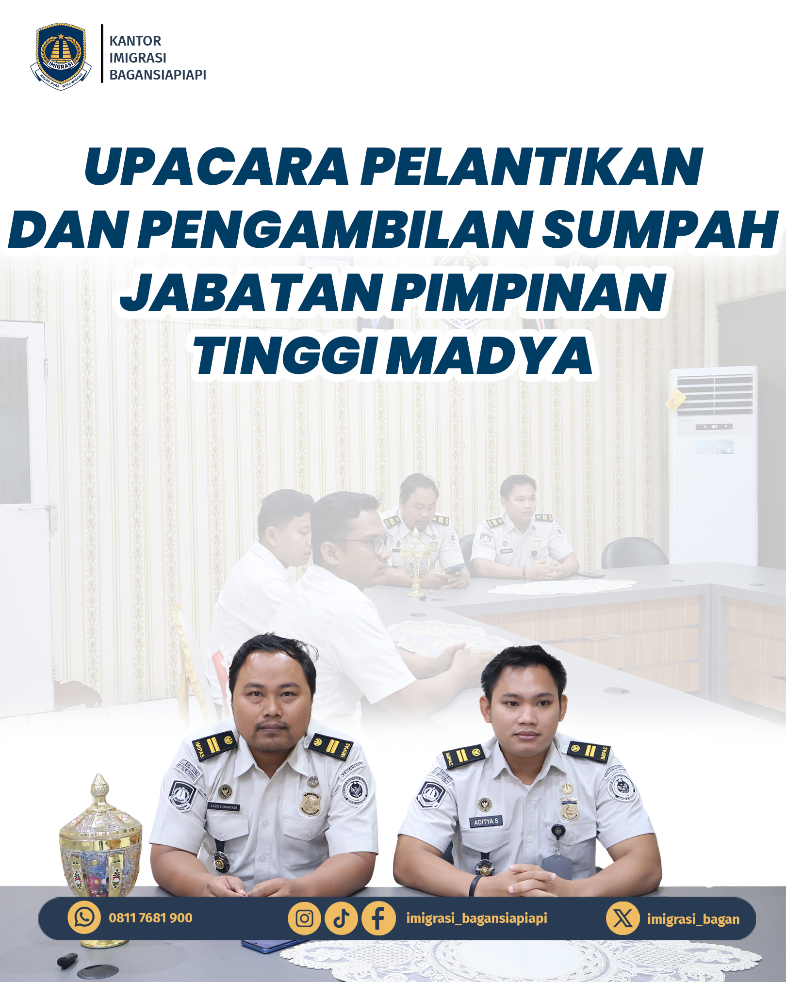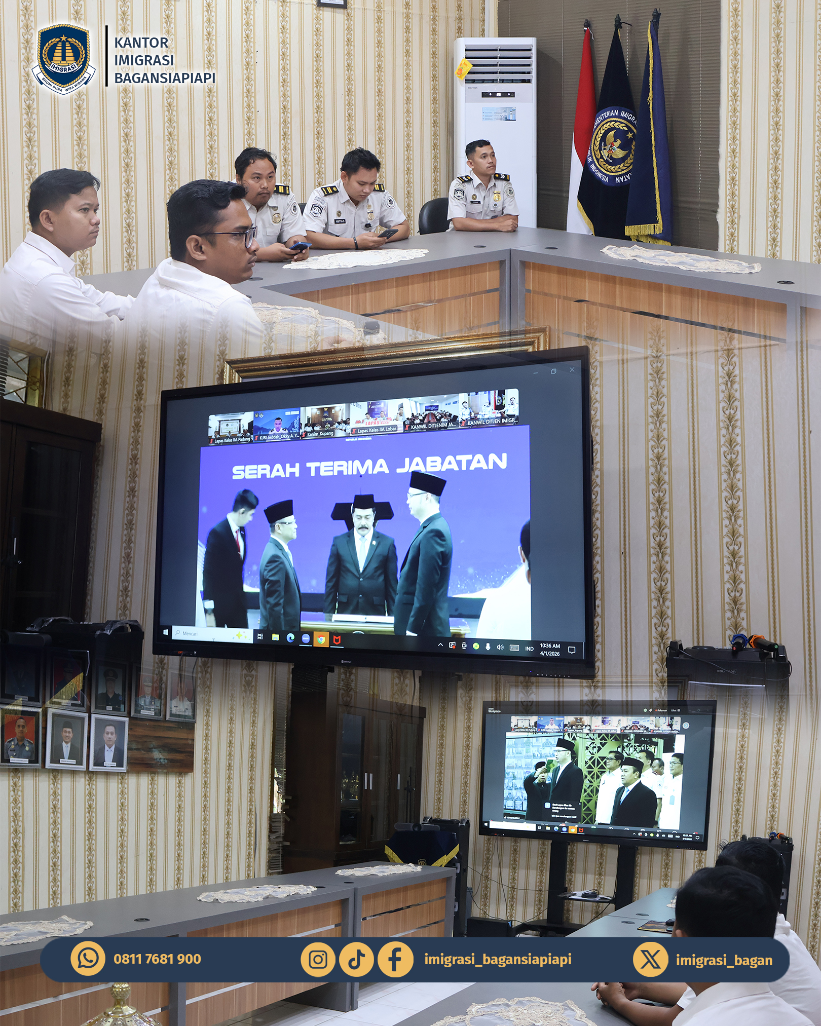 Rabu (01/04) Kantor Imigrasi Kelas II TPI Bagansiapiapi mengikuti Pelantikan dan Pengambilan Sumpah Jabatan Pimpinan Tinggi Madya secara virtual.