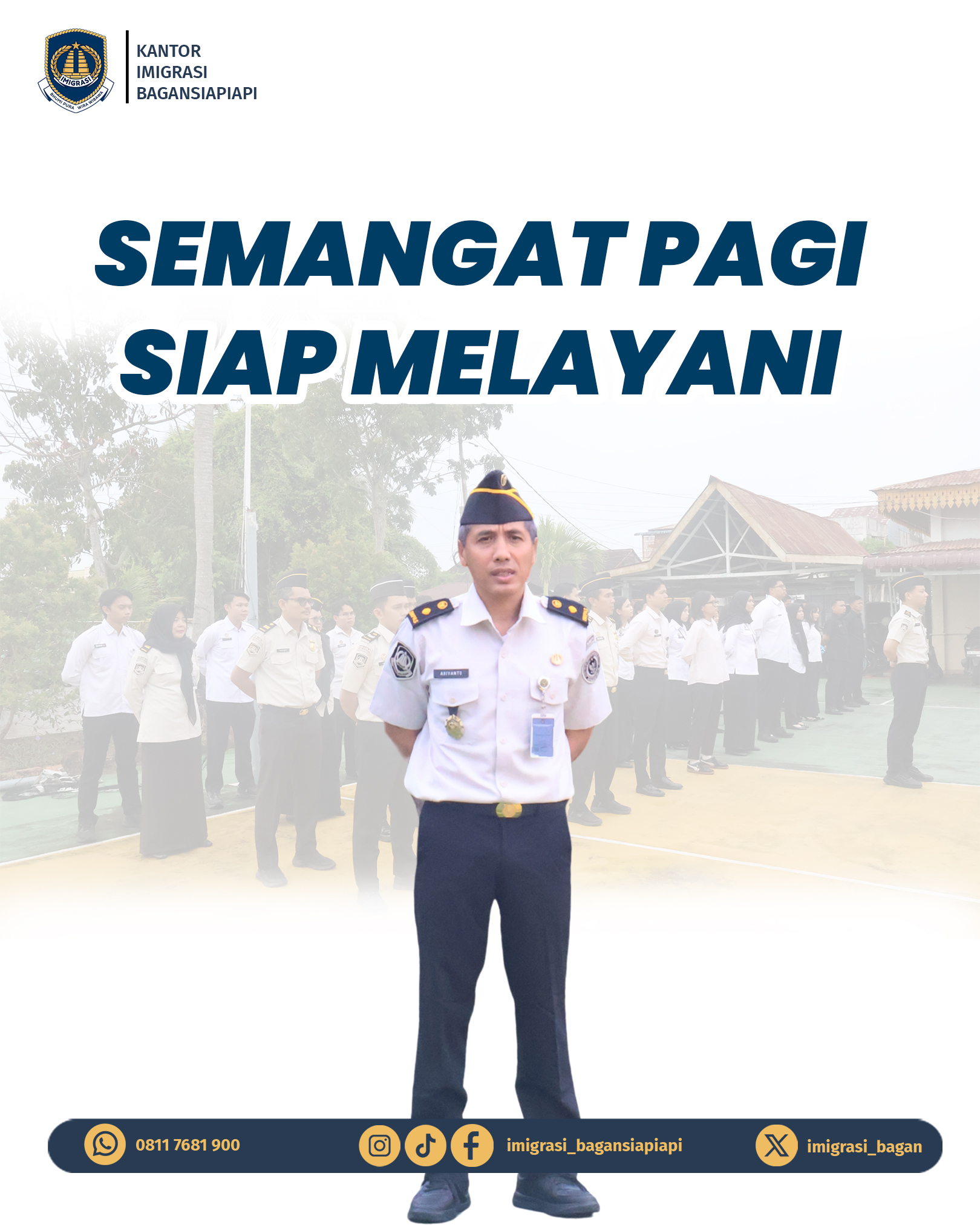 Senin, 20/04/2026 Apel pagi Kantor Imigrasi Kelas II TPI Bagansiapiapi menjadi langkah awal dalam membangun semangat kerja dan memperkuat kedisiplinan pegawai.