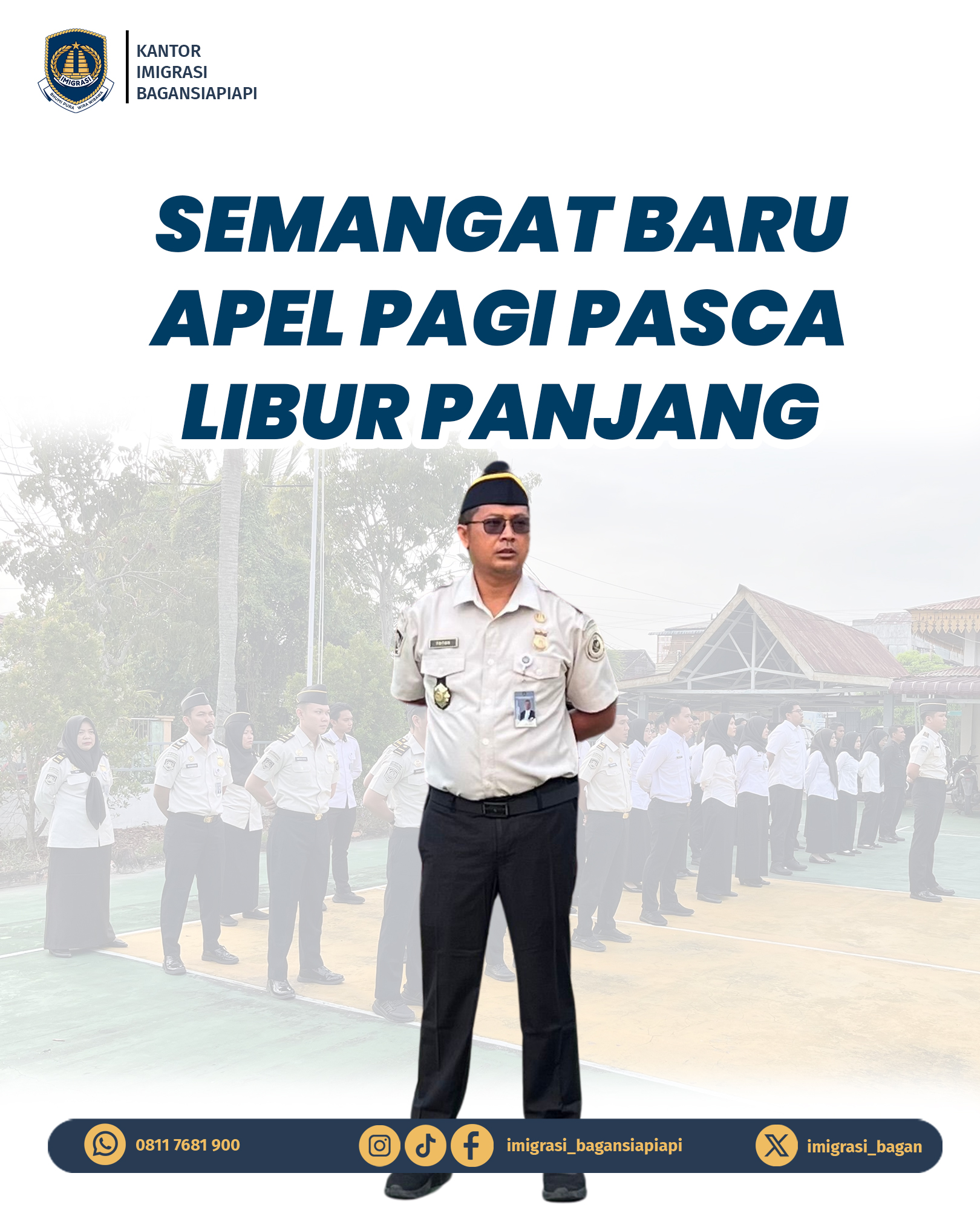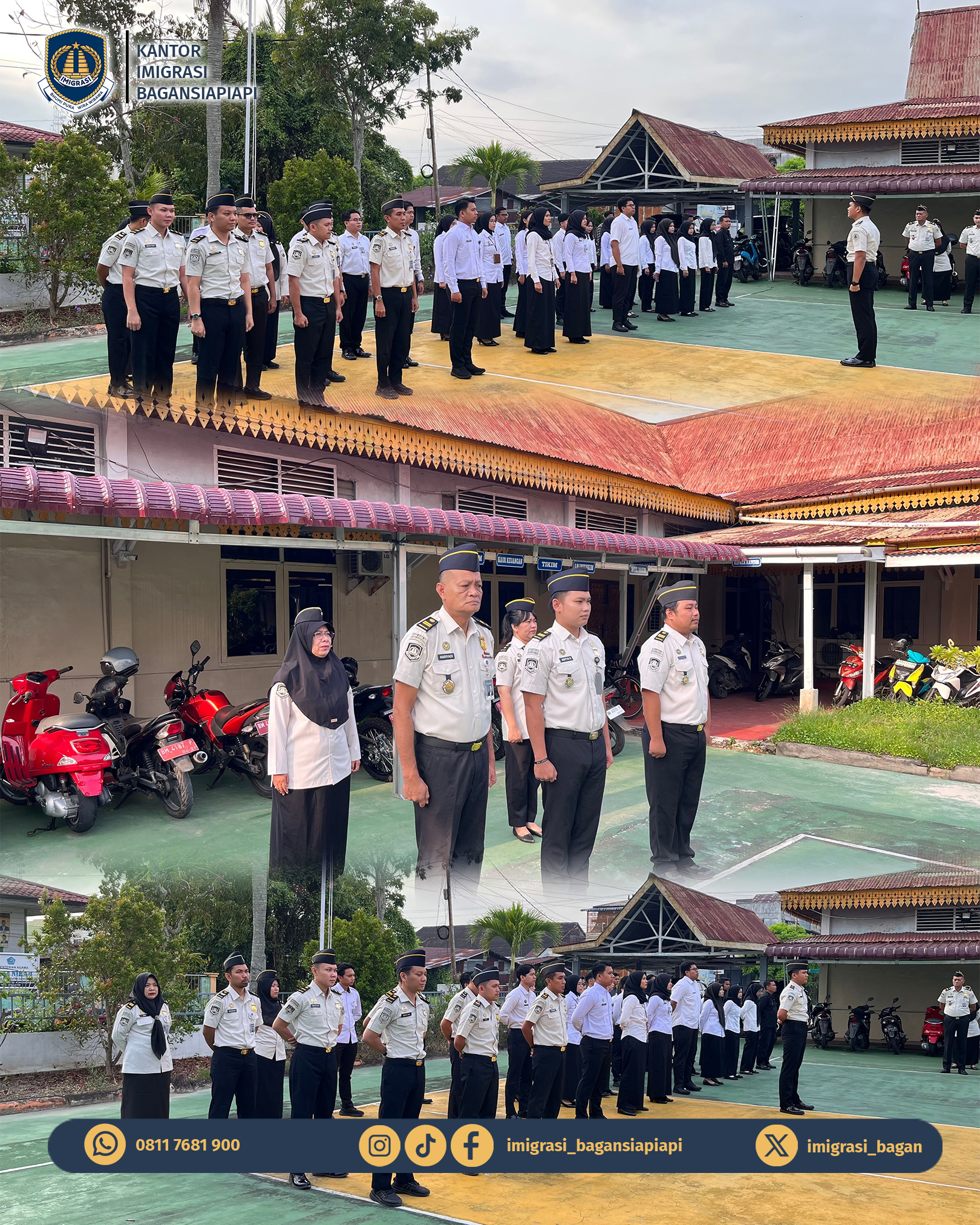 Senin, (30/03) Kantor Imigrasi Kelas II TPI Bagansiapiapi melaksanakan apel pagi setelah libur Hari Raya Idul Fitri menjadi momentum penting untuk kembali menata langkah dan memperkuat komitmen dalam pelaksanaan tugas dan fungsi. Setelah menikmati waktu kebersamaan bersama keluarga di hari yang penuh kemenangan, kini saatnya seluruh jajaran kembali menjalankan tanggung jawab dengan semangat baru, disiplin yang tinggi, serta integritas yang kuat.